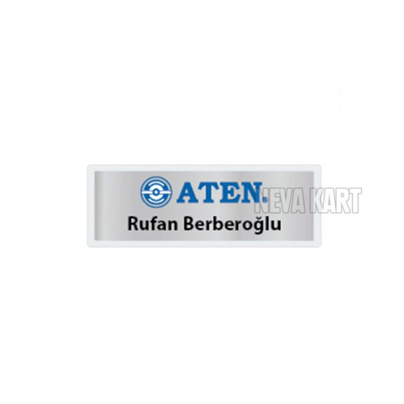 7.5 cm X 2,3 cm Gümüş Metal Yaka Kartı